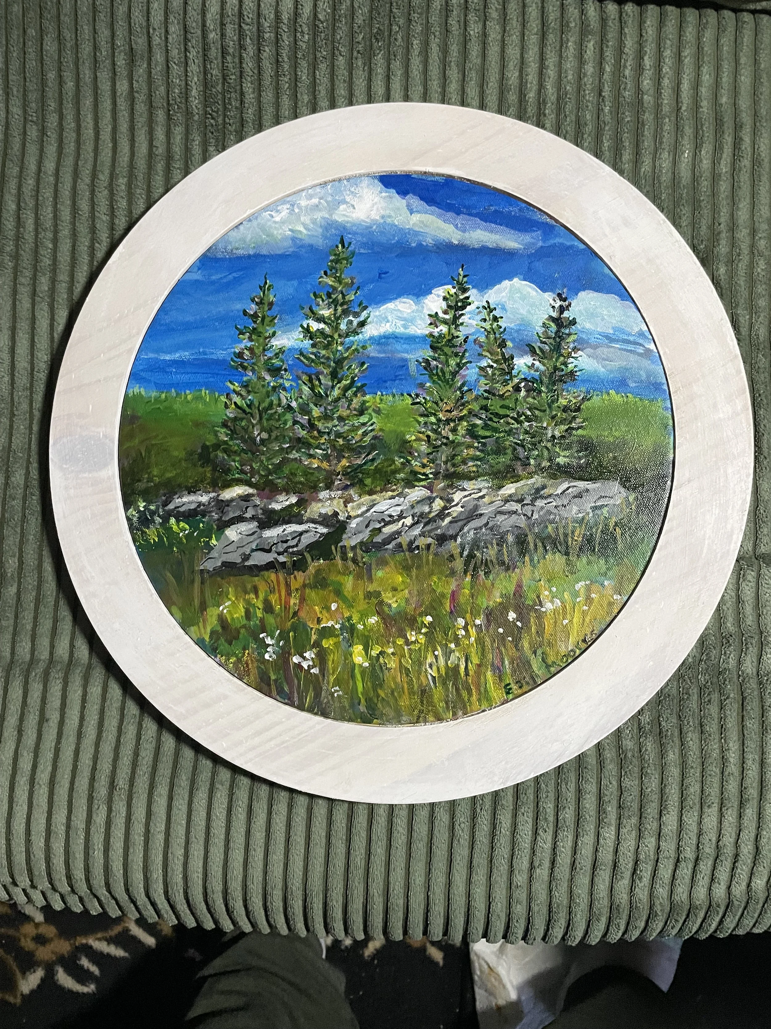 Description: Image is 12” round but larger with frame. Image is slightly darker in person